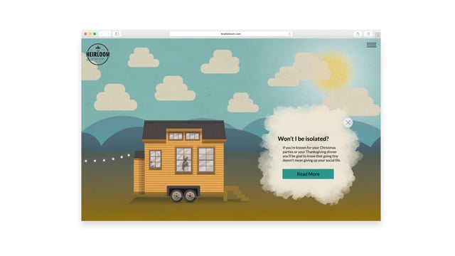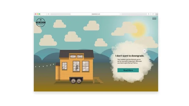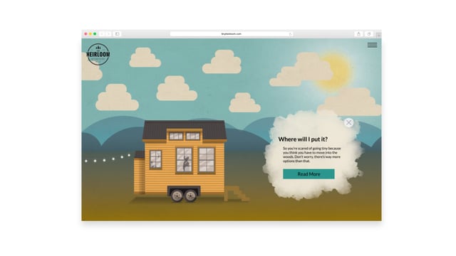 Tiny Heirloom’s potential customers are afraid of downsizing to a tiny house, so I set out to alleviate their fears. One-by-one, this mini site dispels the myths of the tiny-lifestyle and encourages visitors to take the plunge.
